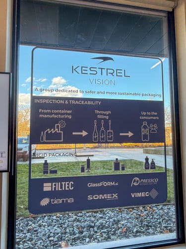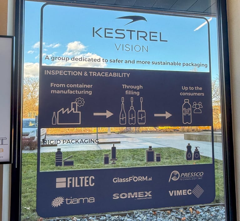 Messages clés illustrant le processus d’inspection et la traçabilité du packaging, les différents secteurs du marché et le portefeuille des six marques de Kestrel Vision.