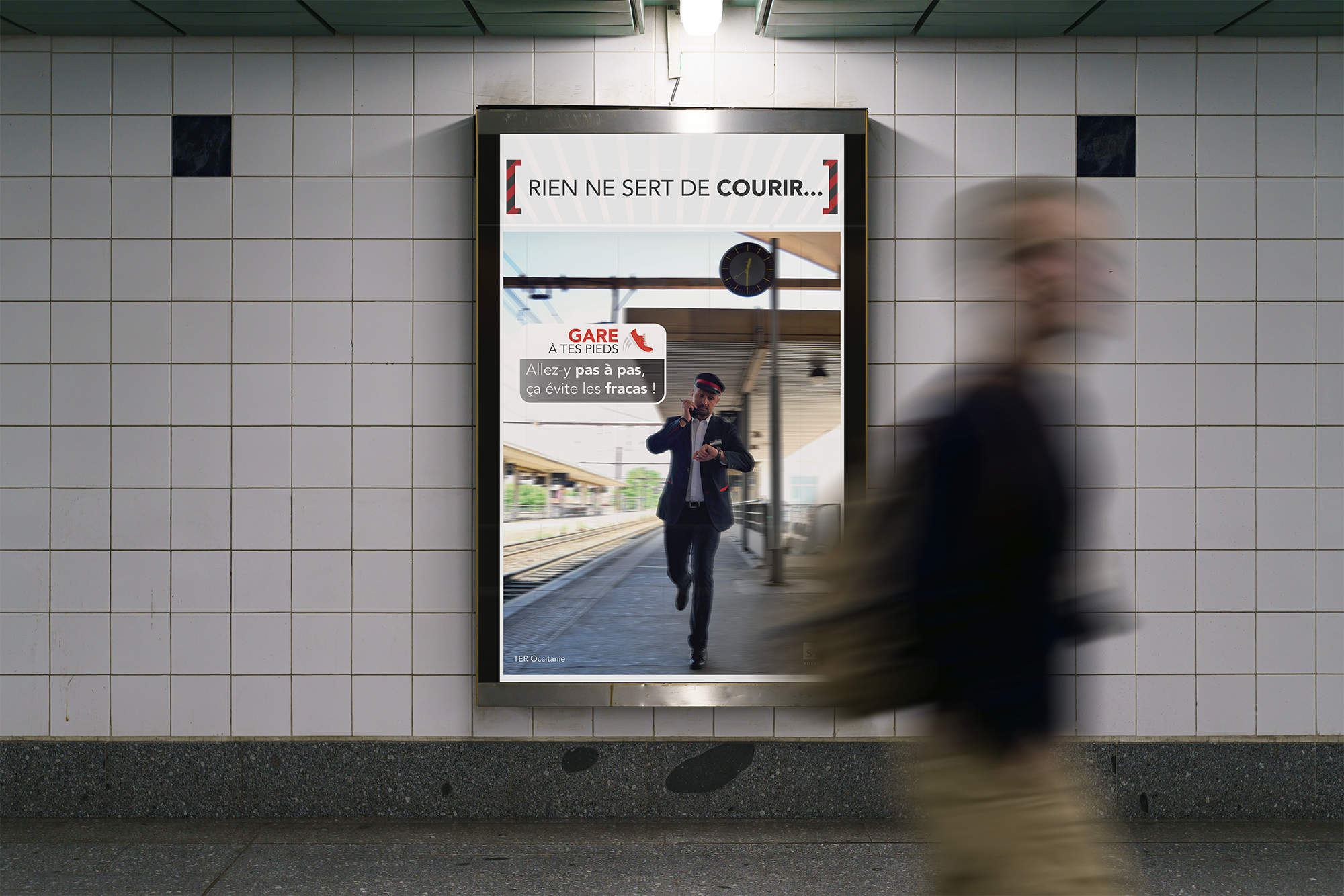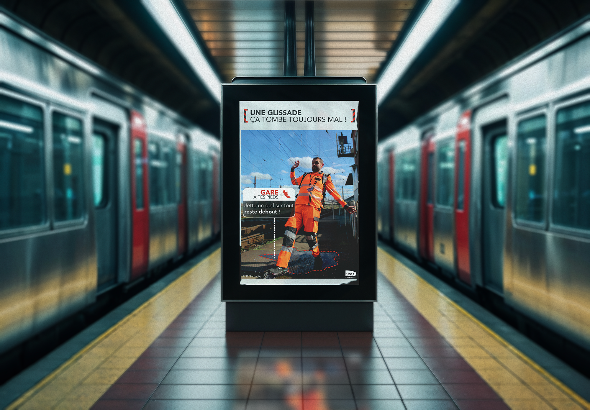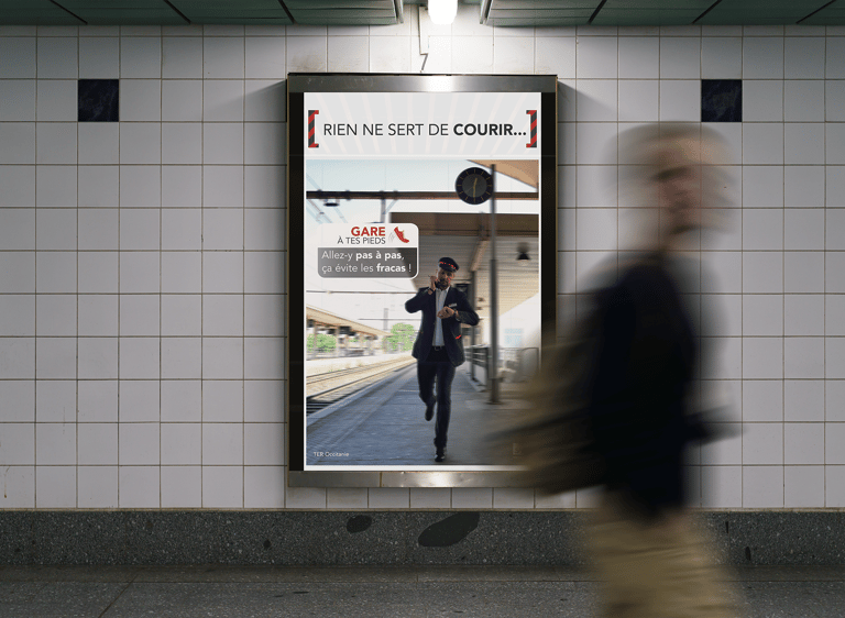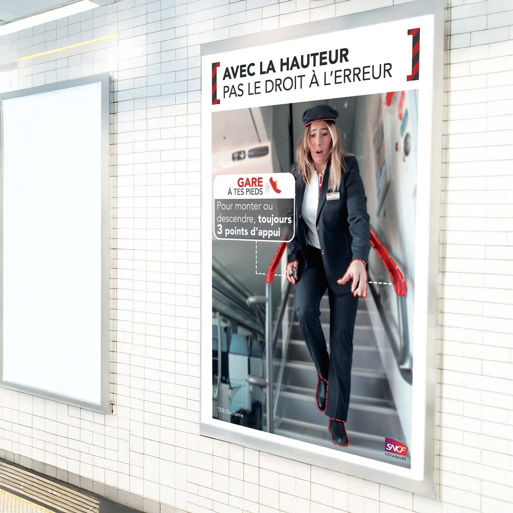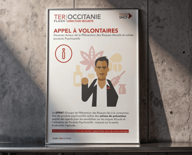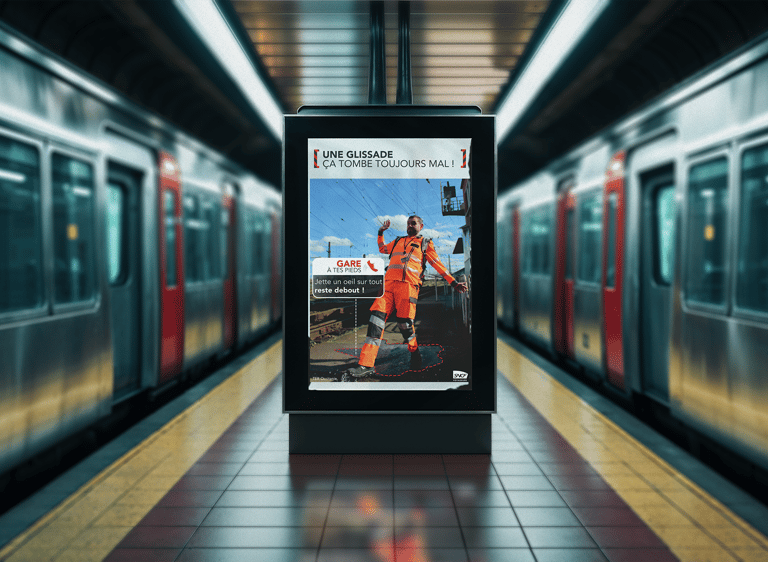 Conception complète d’une campagne de sécurité interne pour la SNCF en Occitanie, incluant photos des collaborateurs, affiches et déclinaisons digitales (mailings, Yammer), afin de sensibiliser aux gestes métiers et renforcer la culture sécurité.