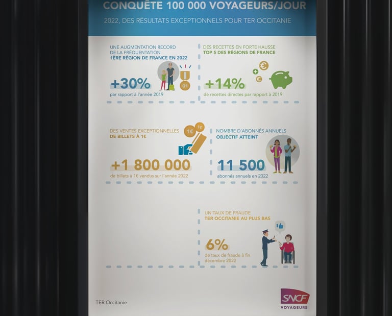 Sélection de mes projets graphiques pour SNCF Voyageurs, leader du secteur ferroviaire en France.